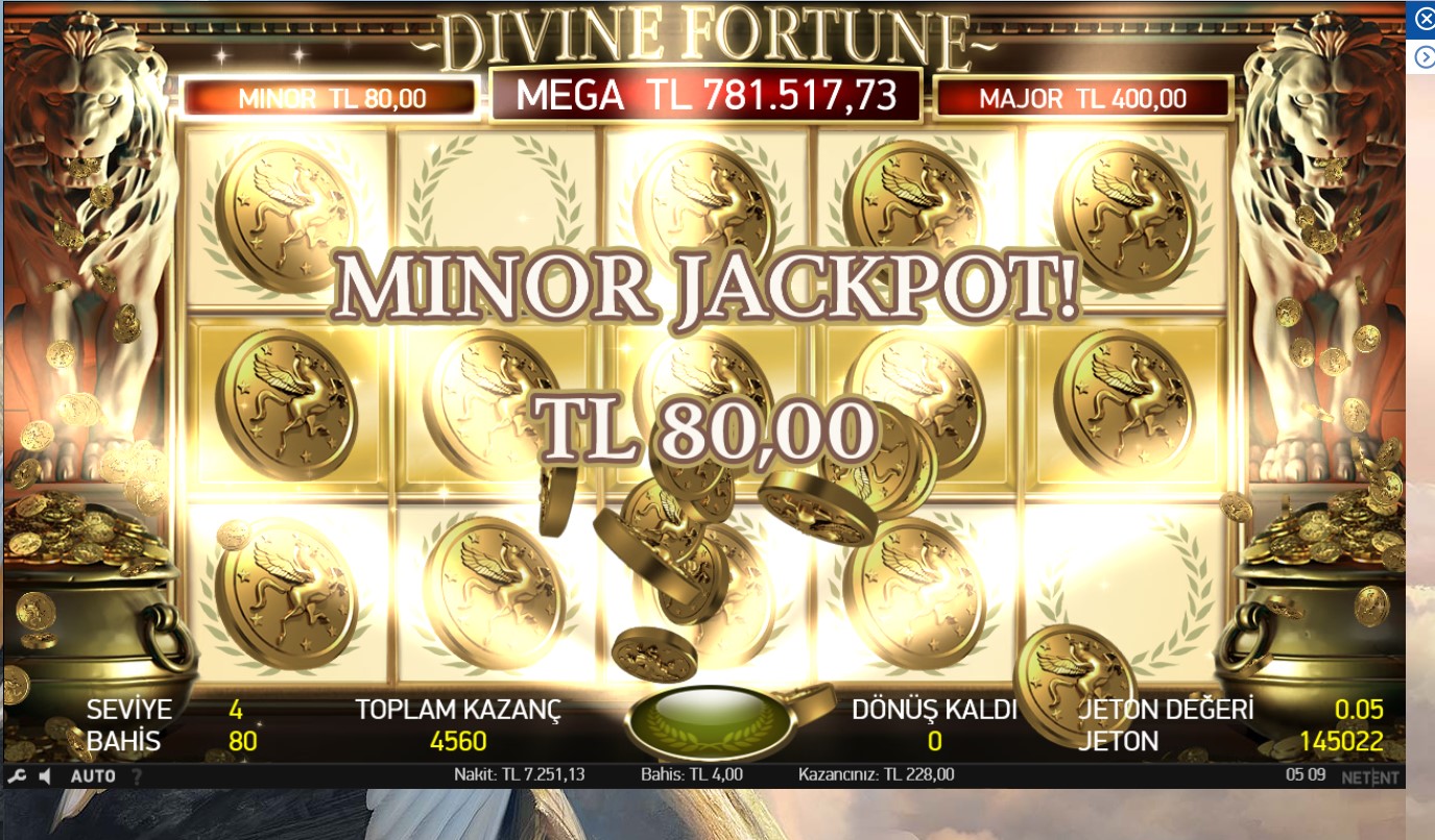 Uzun zamandır slot oyunlarına ara vermiştim , Netent’in yüksek jackpot ödülü olan Divine Fortune oyununda tekrar başladım , bi kaç gündür oynuyorum papara ile para yatırıp 400 lira ile başladımdı 30-35 defa 80 TL olan minor jackpot’u 6-7 defa 400 TL olan major jackpot aldım hedefim mega jackpot olduğu için devam ediyorum kasam 7 bin küsürlerde şuanda umarım mega jackpot ödülü olan 780 bin TL yi alınca da paylaşım yapabilirim sizlere.. Tümbet casino oyunları slot oyunları iyi ödüyor gerçekten tavsiye ederim..