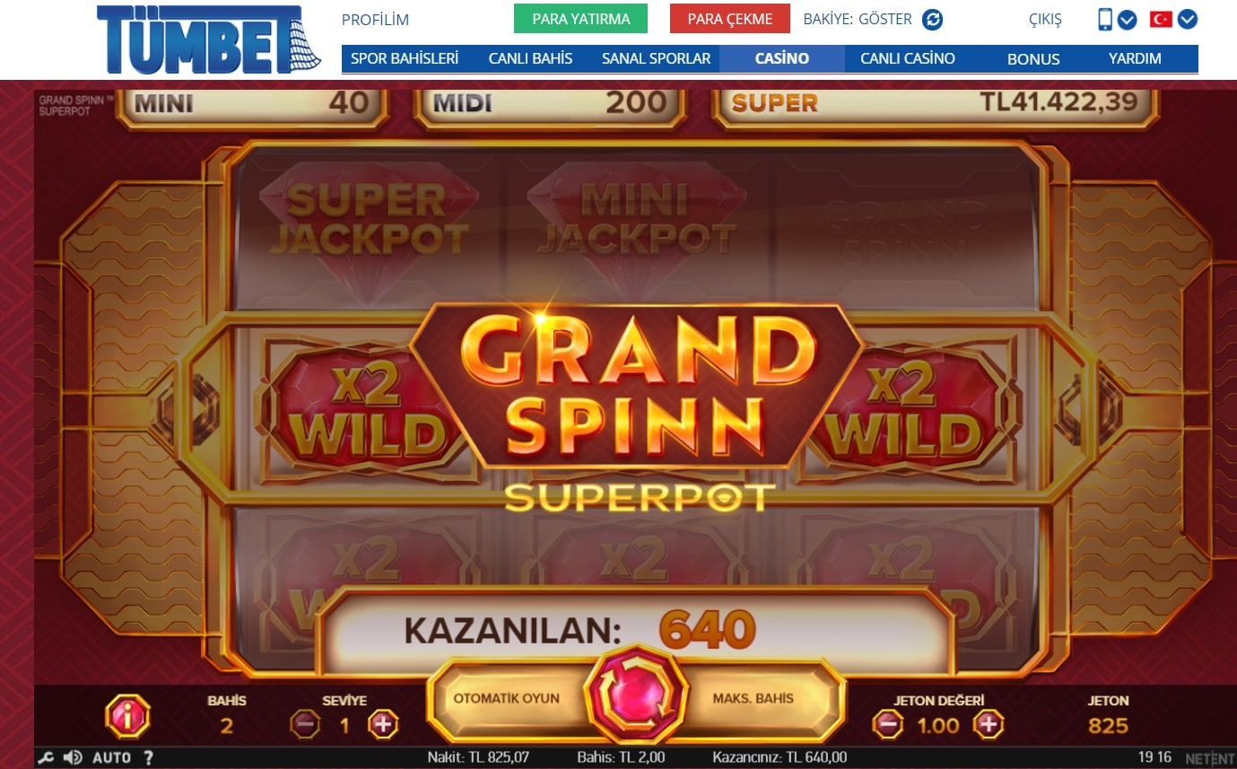 Tümbet’te yeni eklenmiş olan Grand Spinn Superpot oyununa bi bakayım dedim ilk çevirdiğim spinde x2 wild geldi ve 640 tl verdi. Bütün şansımı kullandım tek seferde :))