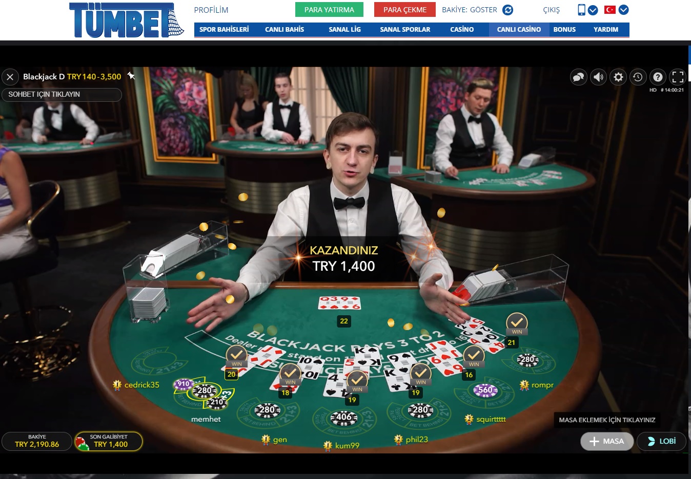 Tümbet bahis sitesinde Pazartesi bonusu ile kazanmaya devam. Var bu sitede pazartesileri birşeyler. Slot oyunlarından sonra canlı casino’da da kazanmaya devam 🙂